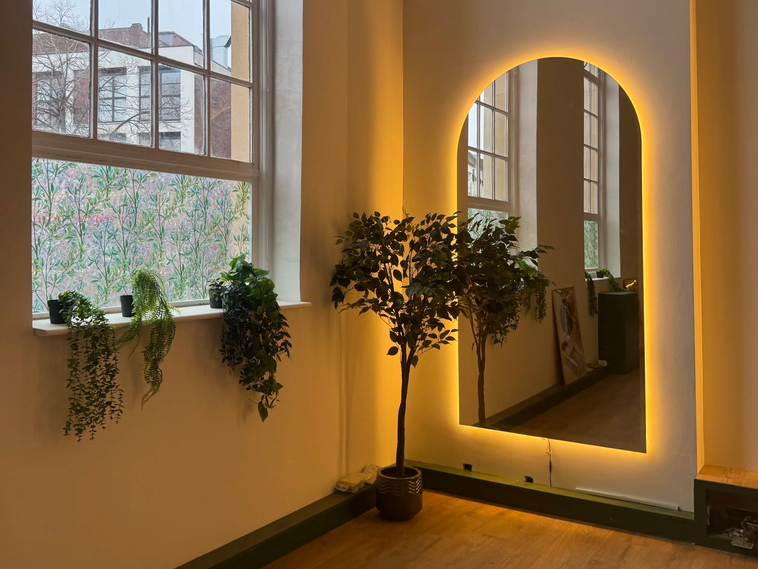 The beautiful, arched windows in the new Refrm Letchworth studio.