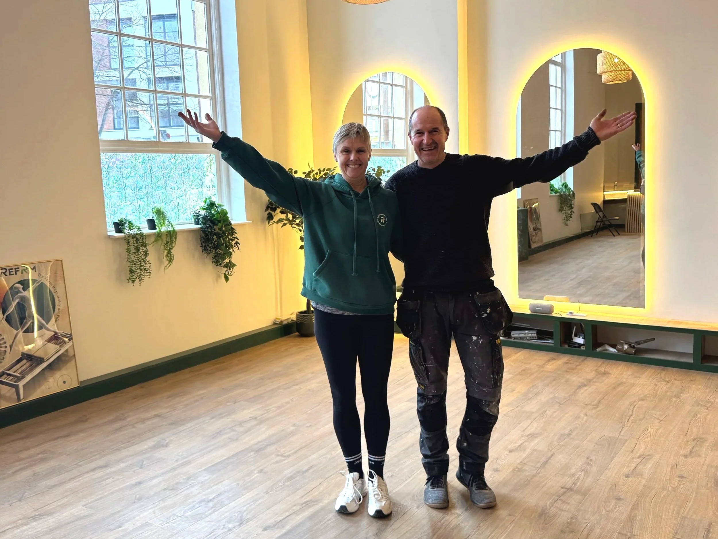 Emma and Declan Ryan, owners of Refrm Dynamic Pilates, standing in the new Letchworth studio (work in progress).